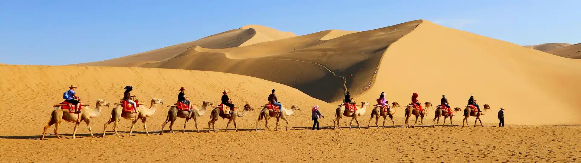 Our customers at the Mogao Grottoes in Dunhuang After lunch, go to Crescent Spring and Echo Sand Mountain, two natural wonders that have existed together as a perfect match for thousands of years on the Silk Road. You could find the golden dunes rising like a dragon's back while the spring as a tranquil maiden in the mountain's embrace. The optional activityĀ here offers a lifetime experience through a camel rideĀ which requires on-site payment that your guide will assist you with.