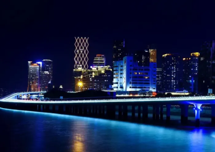 The feature of night landscapes in Xiamen includes combination of the history and modernity, such as the arcades on Zhongshan Road and the international architectures in Gulangyu Island. Surrounded by mountains and sea, you can enjoy the unique scenery of mountain, sea and city at Yanwu Bridge and Wuyuan Bay. Besides, the moonlight ring in garden expo garden and water light show in Jimei New District reflect the integration of technology and culture.