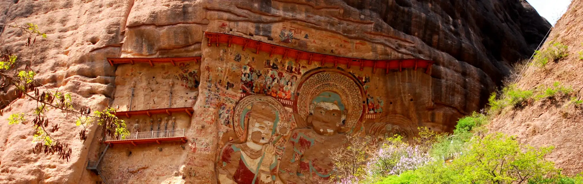Water Curtain Cave in Tianshui City, were built in the late Qin period of Sixteen States, with a history of more than 1,400 years. Today, there are more than 100 Buddha statues, over 3,000 square meters of murals, and more than 20 ancient buildings and stupas in Water Curtain Cave. As the second largest grottoes group after Maijishan Grottoes, Water Curtain Cave is also a Buddhist resort on the south road of the Silk Road.